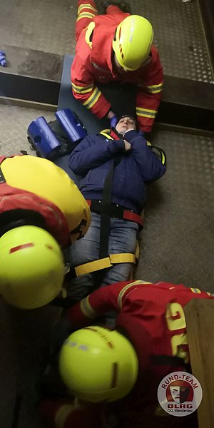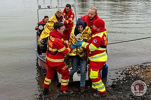 In einem 2. Szenario (welches von einer anderen RUND-Gruppe bespielt wurde) mussten die Einsatzkräfte Hilfe bei einem Verkehrsunfall leisten, bei dem ein Fahrzeug ins Wasser geschleudert wurde und untergegangen ist.