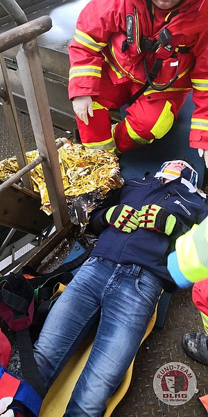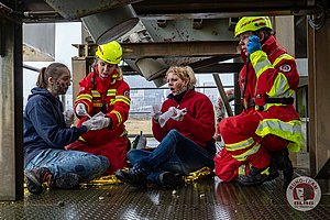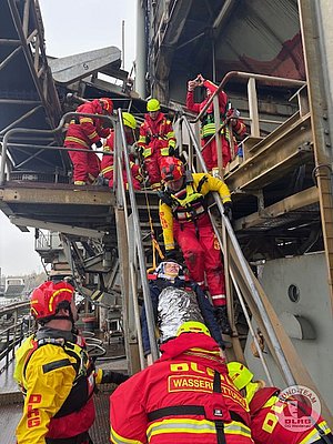 Nebenbei sorgten aufgeregte weitere Besatzungsmitglieder auf dem sehr unübersichtlichen Baggerschiff immer wieder für Unruhe bei der Evakuierung. Zwischenzeitlich fiel jemand von ihnen "versehentlich" noch ins Wasser, was entsprechend den Einsatz eines Rettungsbootes erforderte.