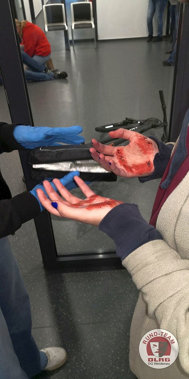 Da bei verschiedenen Fallbeispielen nicht nur "Darsteller", sondern auch "Ersthelfer" benötigt wurden (welche abwechselnd auch durch die Kursteilnehmer dargestellt werden mussten), konnten die Teilnehmer gleichzeitig auch ihre Kenntnisse in Erster Hilfe bei verschiedenen Notfallsituationen auffrischen.