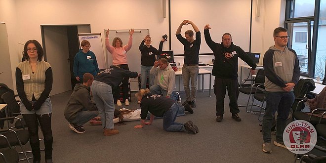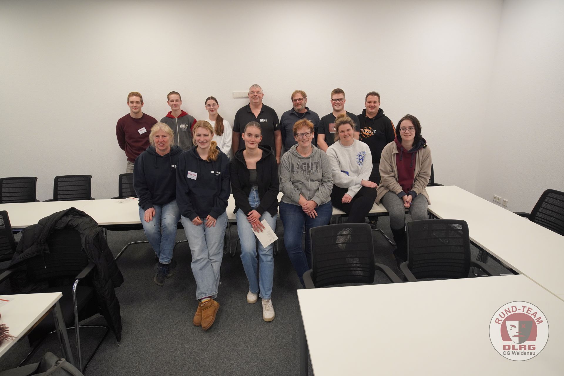Teilgenommen und erfolgreich abgeschlossen haben beim Kurs 12 neue RUND-DarstellerInnen (aus 4 DLRG-Ortsgruppen sowie eine Helferin des THW).